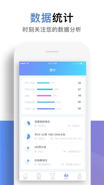 这款应用自动统计了处于各个病情阶段的患者数据,医生可以查看各种状况下的患者;