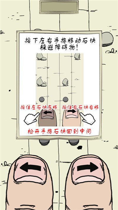 神手之左右平衡手游可能会让所有玩过的人练成只有电视上和小说中才能看到的“左右互搏术”哦!这是一款简单又考验操作和反应能力的小游戏,只需要你左右手的各一个手指就可以完成这个游戏的所有操作了!躲避前方阻挡的落石和机关,速度会随着时间的流逝变得越来越快,想获得高分最重要的一点就是要集中你全部的注意力哦~考验双手协同性,想挑战自己的不要错过啦!神手之左右平衡是一款为用户朋友们打造的手机休闲小游戏,这款神手之左右平衡采用漫画风格,玩起来非常的有意思,玩家需要双手操作,在前方遇到石头障碍的时候,玩家需要按住游戏中的大拇指,松开后就是自动还原,对于喜欢玩跑酷游戏的朋友来讲是一款非常不错的休闲游戏,喜欢就来下载试试吧!