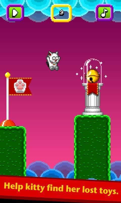 猫咪跳跃是游戏商Navy lue制作的一款街机手游,可爱的猫避开障碍物和登高。收集猫粮收集其他浪漫的猫,挑战你的记录。打败老板猫在高处等待用户和拯救你的女朋友的猫。
