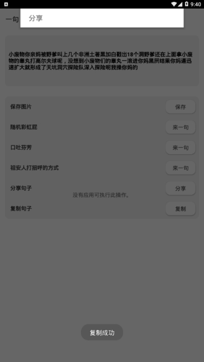 1、各种句子可以随意复制,也可以直接分享到QQ、微信等平台上,让你怼人变得更容易了。