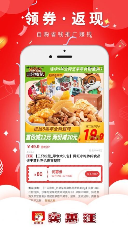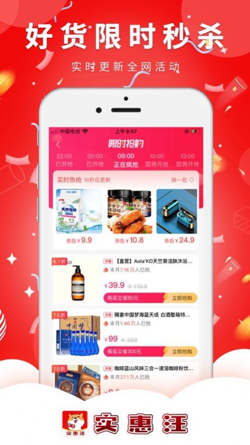 实惠汪app是让你购物不在是高消费的购物平台,为用户带来大量的低价好货,这里有每日半价、疯抢榜、咚咚抢和折上折等功能服务。省钱汪APP为您每日实时更新超值活动商品,优惠力度大优惠券多,同时汇聚最新潮流时尚新品,用出价值玩出特色。所有的商品价格都非常实惠,而且每天都会有各种优惠折扣活动,参与活动用户可以花更少的钱购买到自己喜欢的商品,分享商品也能获得佣金奖励,分享越多赚的就越多。觉得不错的小伙伴欢迎下载!