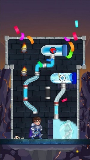 英雄开始了他的寻宝和拯救公主之旅,但猎人面前的困惑将他困住了。您需要做的是以正确的顺序连接管道,以便英雄可以拿走隐藏的宝藏并将公主安全地远离龙,狼和怪物,解决难题并营救英雄,收集所有宝藏,杀死怪物并拯救公主。连接管道,以通过将熔岩和有毒气体吸入其拼图装置来摧毁敌人。