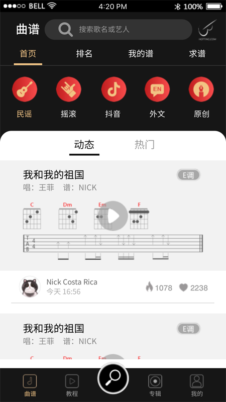 3、如果您弹奏时找不到曲谱、彈唱时记不住和弦、学琴时找不到同伴陪你,来火听谱平台弹琴吧;