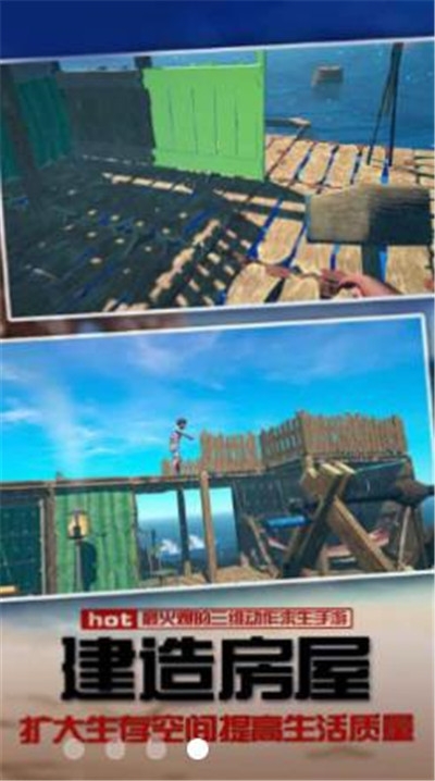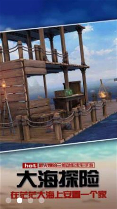 1、收集漂浮的杂物,清除暗礁,在木筏上建立自己的家园,注意要警惕吃人的鲨鱼!