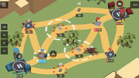 2.排兵部阵打败敌人;拆掉对方防御塔;升级我方卡牌和城堡。