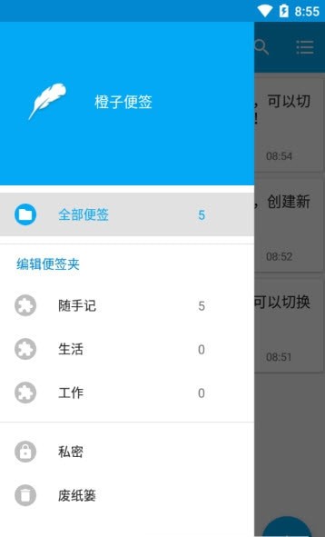 橙子便签软件一款大大小小的事情都能随手记录的记账软件,用户可以根据自己的喜好来选择记录事件非常的方便,能够得到很好的体验让你的印象能够更加的深刻,内置多种用户自定义功能和排版风格的自由调整,有一个私密的空间用于备忘,锁住自己的小秘密,保护自己的隐私,支持昼夜显示功能,即使是在晚上,他们也不怕耀眼的手机灯光,还有一个备忘提醒功能,可以根据不同的颜色来记录事情更方便自己查找,有不同的生活事件都能轻松掌管,平台的功能设置很强大背景颜色也能自由去更换。还在等什么,感兴趣的小伙伴下载体验吧。