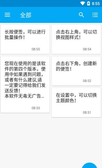 1、默认为便签模式,主界面菜单可以切换备忘录模式。
