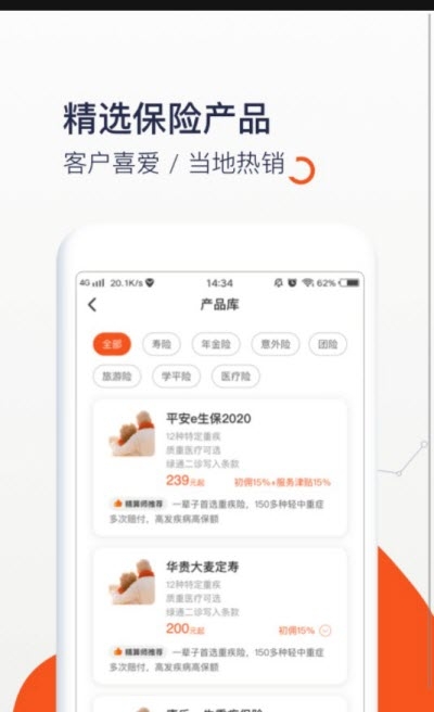 2.有一些适龄的人群的保单推荐,结合着销售信息的排行榜在线显示;