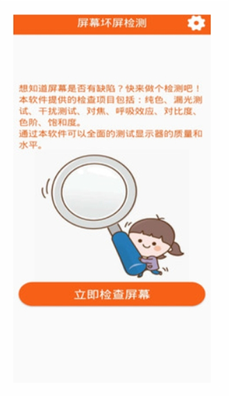 屏幕坏屏检测是一款非常好用的手机工具软件,它可以帮助大家监测智能手机以及电脑电视的屏幕坏点哦!操作及其简单,非常实用。它能够帮助用户们检测手机屏幕的状态,看看有没有损坏,包括了漏光检测、对焦检测、对比度检测等等,非常的实用,快来下载试试吧!操作简单,功能齐全,特别适合不熟悉手机系统和性能的用户,有需要的用户赶紧下载吧!