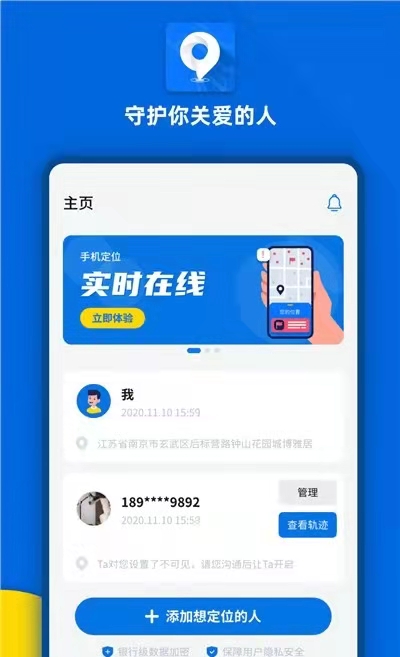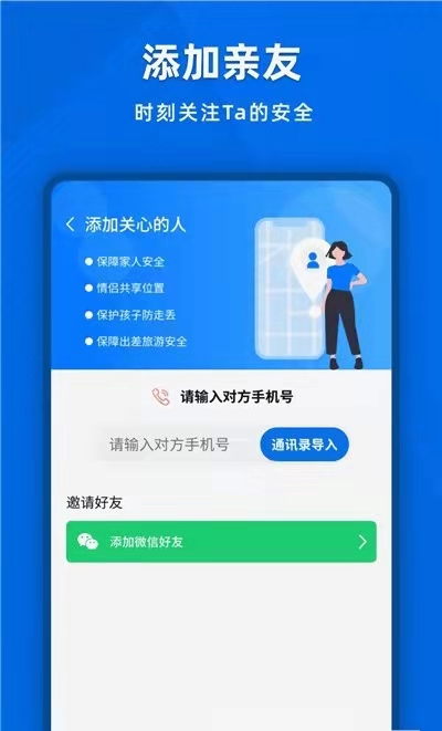 关心的人:添加关心的人,随时随地了解TA的位置。