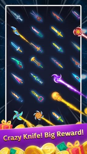 疯狂的刀是一款趣味性十足的射击小刀的游戏,在游戏中,玩家将控制各种兵器来刺击关卡中的小球。这些小球都有不同的生命值,生命值越高的奖励越久越高。游戏中的武器种类非常的多样,并且每种武器都有自己的特效。游戏还有合成玩法,玩家可以将相同的武器进行合成,这样就可以获得更高等级的武器了。玩家在游戏里只需要用小刀对准眼前的球球的发射出去就可以了,小刀会在球球之间来回的翻转,翻转的次数越多,球球被切裂的程度也越高。最后玩家的评分也会越多。丰富的关卡等着你来挑战