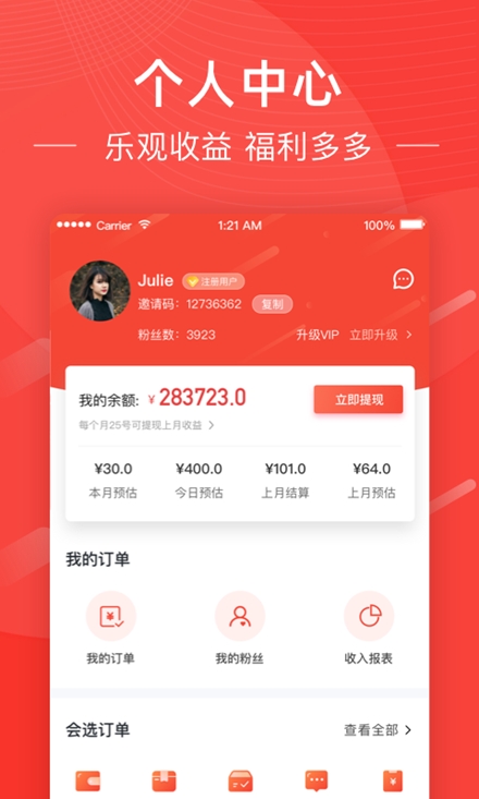 3.在分享给好友的同时也会获得大额的线上佣金,让购物模式变得更加方便。
