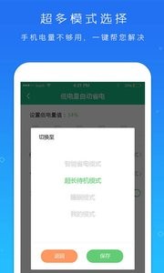 智能省电,自定义省电模式,方便简单,降低不必要的手机电量消耗,延长电池使用时长。