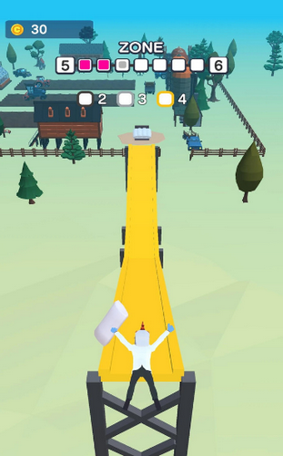 1、空翻入床在空中掉落,左右移动角色,顺利的到达柔软的床上,时刻保持角色的平衡;