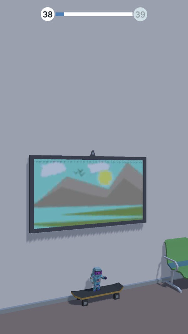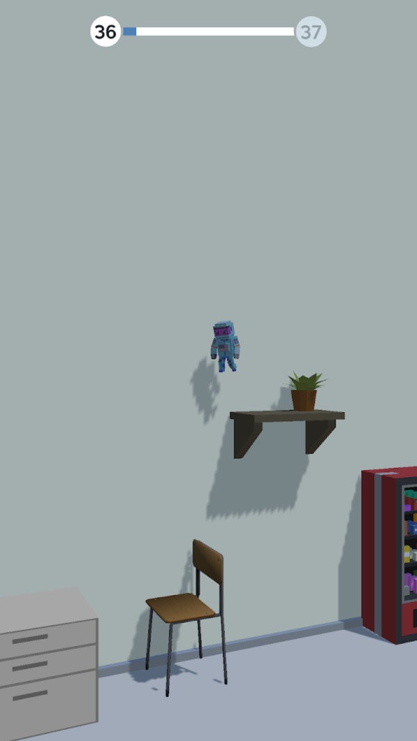 可以说是升级版的机器人跳一跳玩法,背景是你的家中,从客厅到出厨房、洗手间、卧室、阳台等等等你来解锁,就看你能够让机器人在这个家中跳的多远,能解锁多少皮服,玩法简单,上手容易,还等什么,快来游戏中亲自体验一下吧!