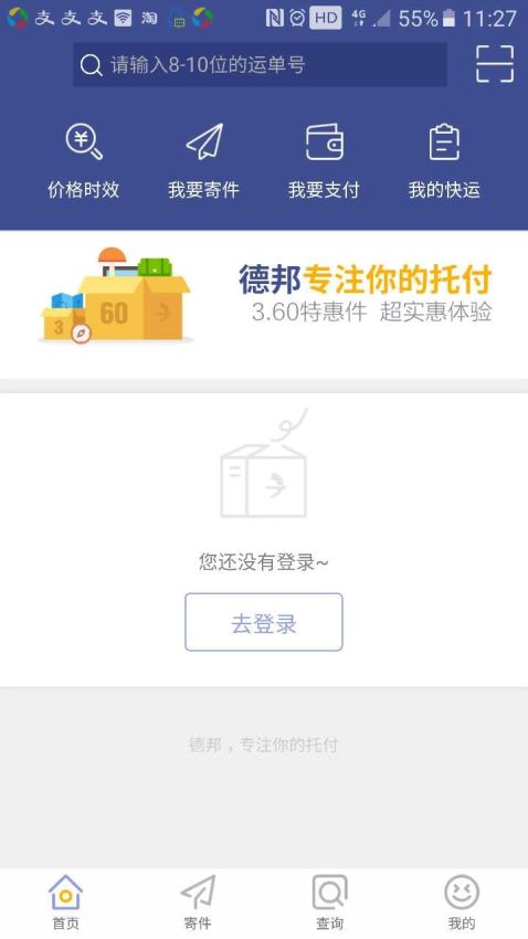德邦快递app是专门为德邦客户打造的手机服务平台,里面集合了下单、查单、跟踪及个人资料管理等基本功能,也有手机与电脑双屏互动等个性功能。支持用户在线查看、管理自己的订单,快递可以在线快捷派单。