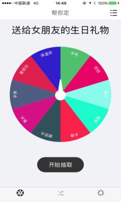帮我定app是一款非常有趣的应用软件,专门帮助选择困难的用户提供有趣的选择应用,占用非常少的手机内存,随时给你最全方位的生活选择帮助,全新模式推荐,各种趣味主题,以及每天新鲜事等你来体验,专门为广大用户们精心准备的一款手机应用软件,帮我定是选择困难症的福音,帮助你快速做决定,输入你纠结的问题,添加或者导入所有的选项,用转盘来快速决定,喜欢就赶快下载吧。