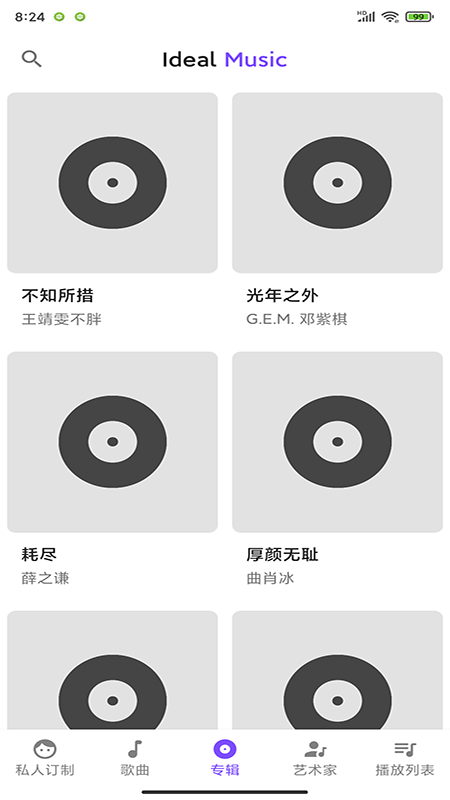 1、还有众多的专辑资源,专辑里面展示了不同歌星的各种专属音乐专辑;