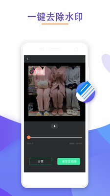去水印神器是一款视频与图片水印处理app,帮助用户简单快捷的去除视频和图片的水印,轻松获取到自己满意的无水印效果,操作十分简单,一键即可识别水印区域并自动去除,另外这里还提供的多种视频剪辑功能,用户可以通过app裁剪时长、调整视频尺寸、合成视频、视频倒放、视频变速等等各种常用的视频剪辑功能,可以快速制作各种有趣的视频效果,这里还有丰富的视频编辑教程,通过观看教程,学习到各种功能的操作方法,使用更方便,此外还可以通过app给视频添加水印效果,自由编辑水印样式。