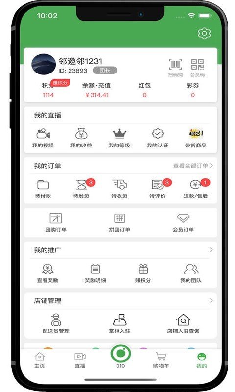 3.在线管理店铺,当商家在此开店之后即可在线管理配送员、商品以及收入数据;