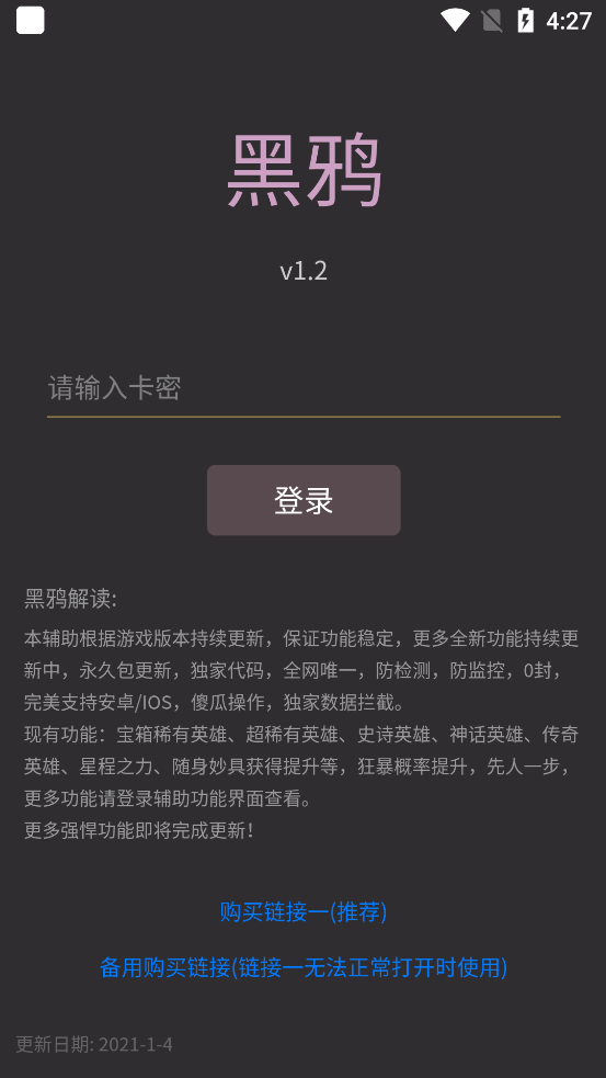 黑鸦app——超级实用的游戏助手,为荒野乱斗玩家们推出的游戏助手,在这里你可以找到喜欢玩这款游戏的小伙伴们,一起组队玩游戏,还有最新的荒野乱斗攻略、游戏活动等全都能掌握,喜欢的快来下载使用吧!现有功能:宝箱稀有英雄、超稀有英雄、史诗英雄、神话英雄、传奇英雄、星程之力、随身妙具获得提升等,狂暴概率提升,先人一步。