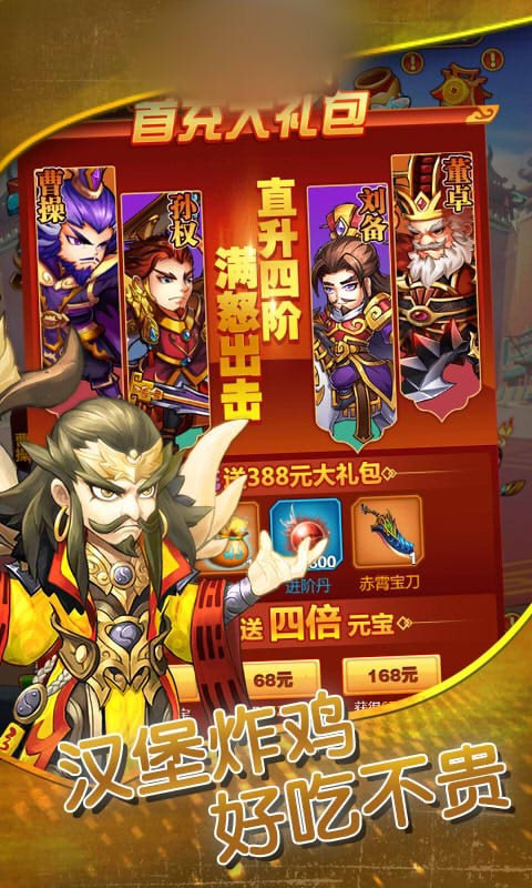 3.自由度还是很高的,甚至能够妻妾美女成群,这在现实生活中想都是不敢想的,只能在手游里面稍微的yy一下了,还有汉堡炸鸡可以吃呢。