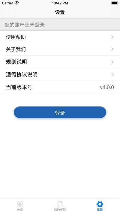 1.应用有分类、我的书架、设置三大模块。