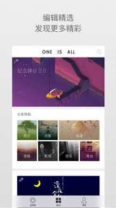 1、「ONE·一个」是韩寒先生监制、原《独唱团》主创共同制作的一款年轻人文艺阅读应用,集合图片、文章、问答、音乐、电影内容,每日精挑细选,为你带来优质的作品;