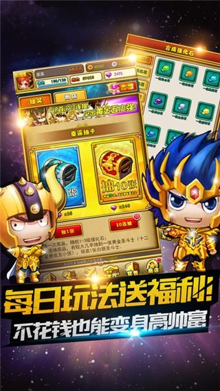 这款游戏把我们记忆中的圣斗士都以缩小版的形象再现,相当于是展现的是Q版的圣斗士看起来特别萌,而且他们的形象和配音都是没有改变的,一些经典的故事情节也是完美的还原,有一种在看动漫的感觉,游戏里面的特效也是很不错,体验感很好。