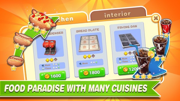 1、使用精致的3D图形设计,完美的将厨房复原,各种设施一应俱全,可以创造各种美食;