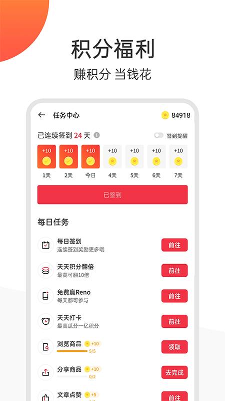 2、每日签到领积分;
