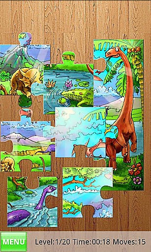 2、游戏教学,以恐龙拼图的游戏教导宝宝开发思维能力、提高想象能力;