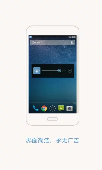 最简洁小巧的护眼应用,完全免费,永无广告,专为废寝忘食看小说,夜以继日看视频,机不离手打游戏的手机一族打造!轻松护眼app是一款能够保护眼睛的应用,如果你长时间玩手机的话,那么眼睛难免会近视或者酸痛,严重者还能导致病变,那么这时候你可以使用轻松护眼来保护你的眼睛,它能够降低屏幕亮度,防止蓝光过滤,让你更轻松愉快的玩手机,有需要的赶紧来下载使用吧!!!