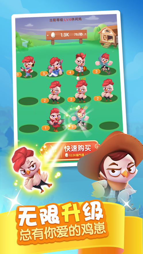 1、这些可爱的鸡是可以升级的,等级越高,带来的收益效率肯定是越高的。