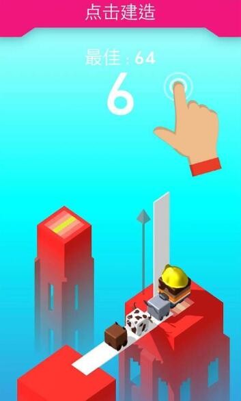 趣味搭桥达人是一款十分好玩的休闲竞技类游戏,游戏画面十分的简约清新,在游戏中玩家将扮演一名搭桥达人,在这里玩家需要通过点击屏幕来制造桥梁,玩家点击的时间越长桥就越长,不过不是长就可以了,玩家需要确保桥的另外一端可以搭到桥墩上而且不超出。顺利的通过一个个的关卡,无论是太短或者太长都会让手中的动物掉落下去;把握好每一次可以使自己跑得更远的机会,探索更多不同的地方;通过屏幕点击的方式来搭建,长时间的按压,它就会变得更长。玩家需要控制好桥梁的长度,不能长也不能短!