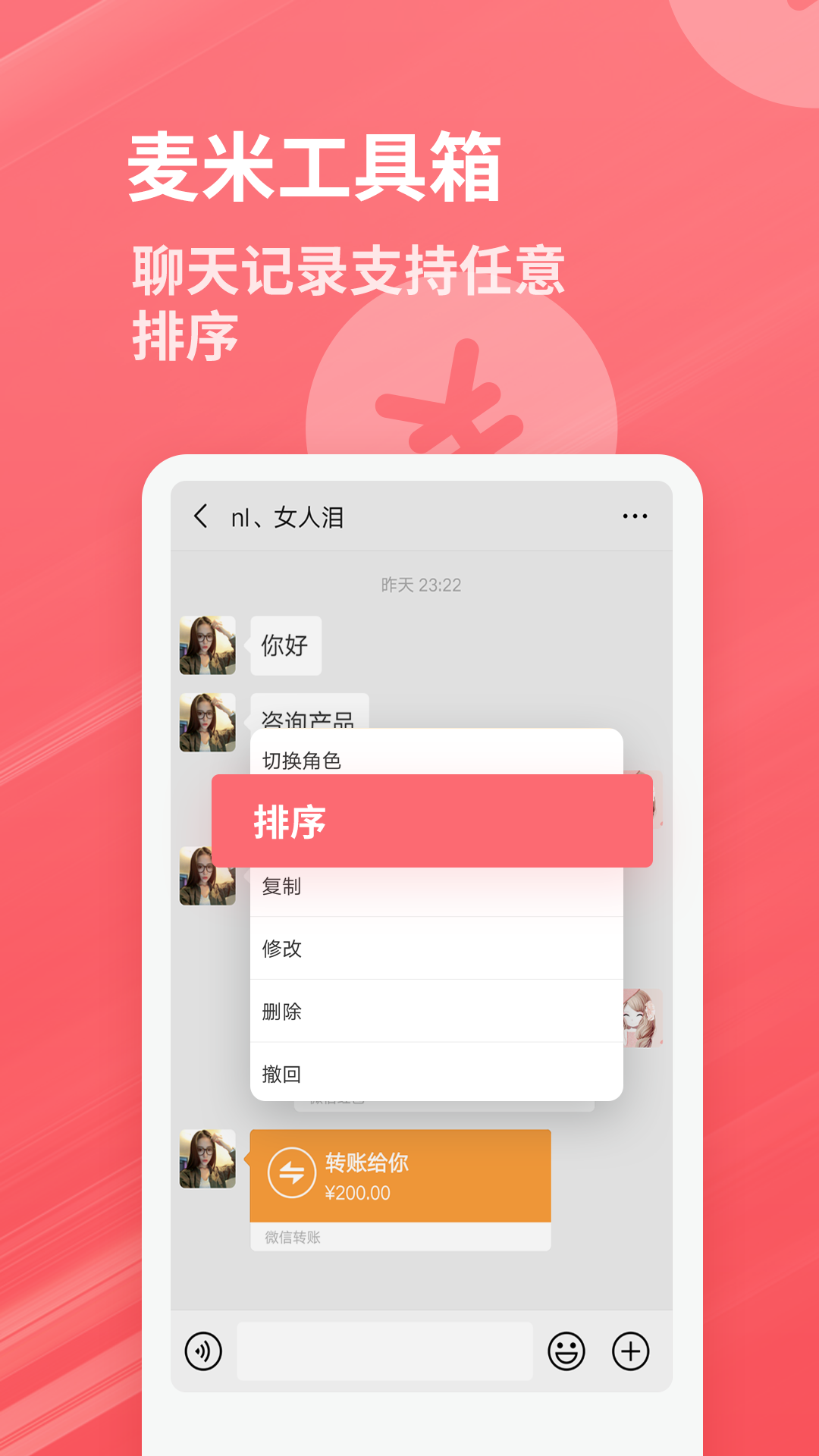 麦米工具箱,备受好评的微商工具,你可以用它轻松生成微信对话、微信红包、微信零钱的界面,功能丰富,十分适合营销,散客,携手创业,轻松赚钱,是做微商生意必备的营销神器。