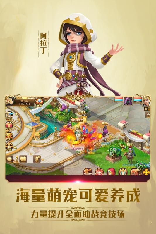 3、特色的梦灵召唤系统、有趣的跨国战、呆萌的宠物坐骑以及丰富玩法的公会系统