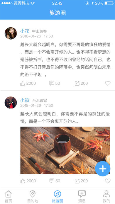 1、可以查看/收藏/分享他人的优秀旅游圈;