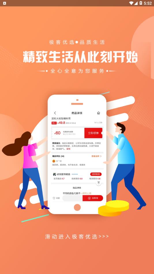 极客优选app每天更新上千种商品,低至1折起再包邮。精选商品均经过人工审核,安心,放心,值得信赖。服装鞋帽,文体居家,箱包配饰,数码母婴,应有尽有。这里为你提供了海量的优质商品,所有商品都是经过人工挑选的,质量绝对有所保障,还有各种低价特卖商品,每天更新,价格实惠,汇集了国内外各大品牌,每天都会实时更新上千种商品,所有的商品都是经过人工筛选,保证商品的质量,大家课放心购买。每天还会发放海量的优惠券,没有任何的使用限制,手机下单,自动抵扣。可以给予用户超棒省钱购物体验,觉得不错的朋友可以前来下载使用。