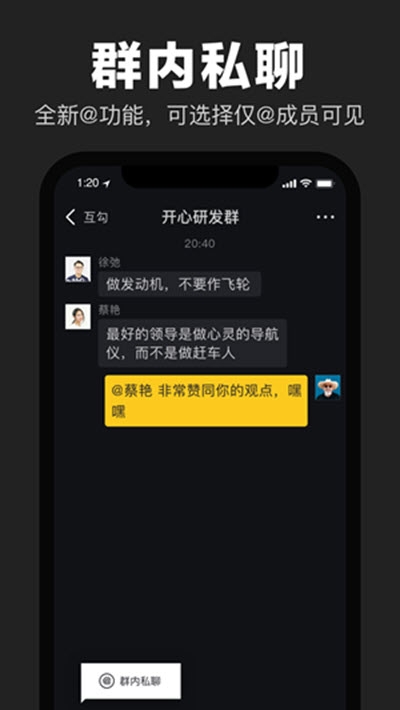 1.全新@功能,可选择@部分成员私密聊天,无需为临时需求创建多个群组。