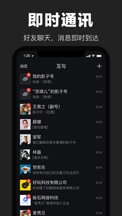 互勾软件是一款适用于工作、校园、家庭等多种场合的的社区交友软件,致力于通过IM解决一切事物,多种实用功能于一体,是你便捷生活的得力助手,每天的聊天信息将会在这里快速的展示,APP能够显示出更多的话题资源,群消息可以一键待接收!深受大家喜爱,也很重视,进入这里交友,需要多重认证以及验证才可以,让你可以更安全去交流,拥有安全且隐私性极强的文字交流,还有高效语音交流等!用户的信息是真实的,还可以进行语音和视频的交流,感兴趣的小伙伴们赶快来下载体验吧!