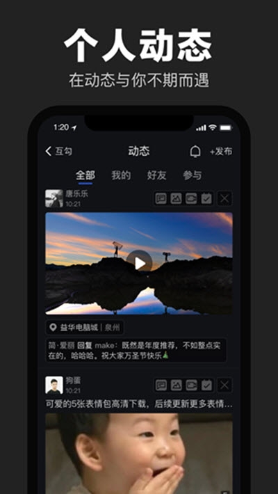 【个人动态】用户们可以在线发布自己的动态,在动态与你不期而遇;