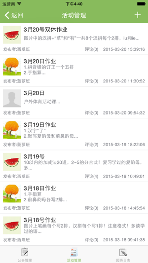 4、发布学校的公告以及家庭作业等,里面支持多种的交流方式的,可以及时知道孩子的状态。