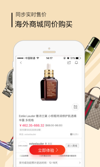 2、只要一键购买,再也不用担心在国外商城购买时所需的繁琐的注册、支付、转运流程,直接在海外商城为您下单,100%正品。