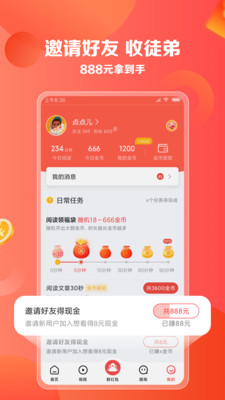 1、刷新闻,发布围观,刷视频,邀请好友都可获得红包金币哦,无上限;