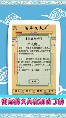享受成语给你带来的乐趣,用心的感受这场游戏为你带来的无限欢乐;