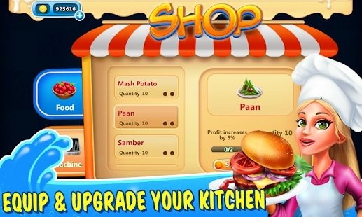 3、升级自己的厨房来提高厨艺,减少你制造食物的时间,让美食更加美味;