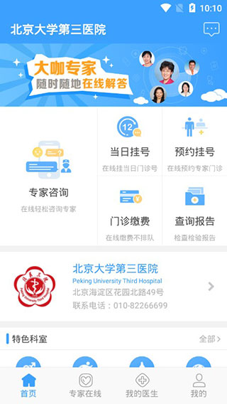 各种缴费都能通过app线上完成,享受便利的医疗服务;