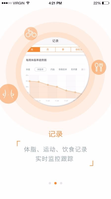 系统实时监控跟踪,全方位记录体脂、运动、饮食数据;