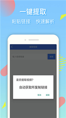 一键去除视频水印,只需点一下按钮就可以去除视频上的水印,支持多个短视频平台视频去水印,操作简单,复制视频链接后,打开软件点击提取,即可去除水印并下载,解析视频与原视频完全一致(本功能仅供视频作者合法使用,非法使用造成的一切后果由使用者自己承担)